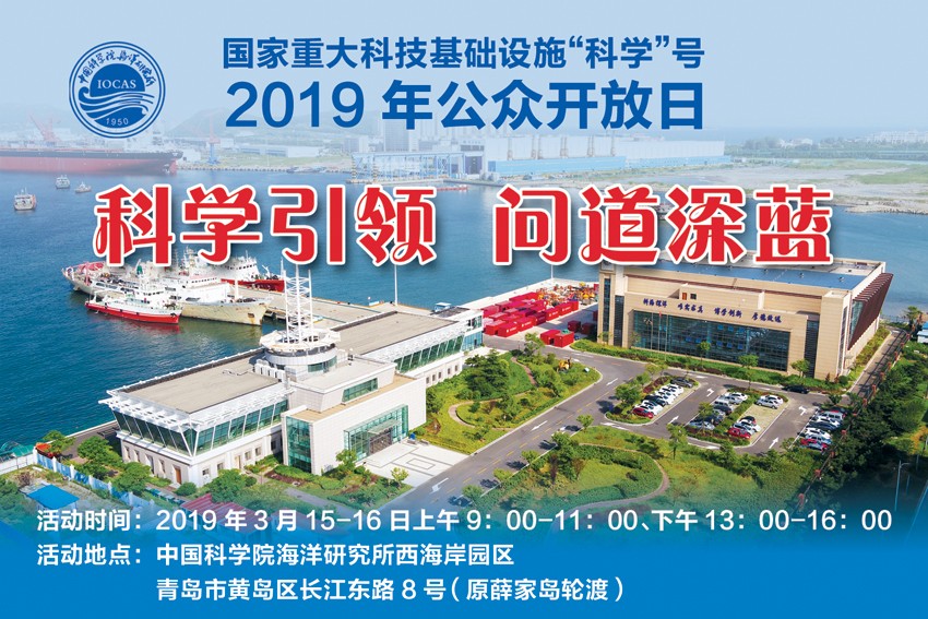 中国科学院海洋研究所将于3月15日、16日举办国家重大科技基础设施“科学”号海洋科学综合考察船2019年度公众开放活动。